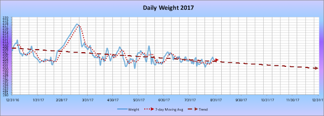 Despite the terribly off-plan eating yesterday, and maybe because I stopped eating earlier than usual, I lost weight. Look how I'm hugging the trend line - I love it!