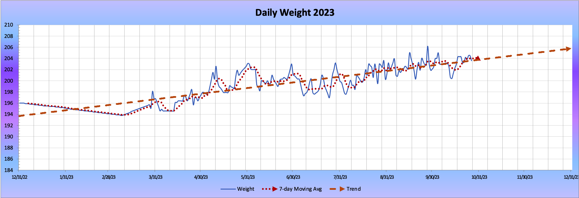 Good loss, and, amazingly, after a meal at the Maplewood (finished at home). I couldn't help but think I was going to gain weight, but no...